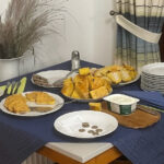 Pünktlich 19:30 Uhr stand am Freitag, den 21.11. das kalte Buffet bereit: Es gab Kürbisbrot, Schmalz und Apfel-Secco aus der Region. Auf der Bühne wartete außerdem schon das Mohrkirchener Folk-Duo Tea-for-Two, um zwischen den Beiträgen für musikalische Unterhaltung zu sorgen.