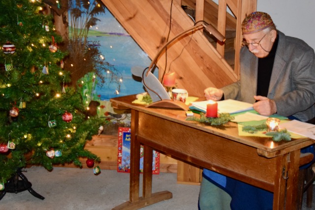 Auch in diesem Jahr lud das Team vom Dorfmuseum im Rahmen des „Lebendigen Adventskalenders“ zu einer kleinen Weihnachtsfeier ein – und mehr als vierzig Besucher und Besucherinnen kamen. Die Tenne war voll – und obwohl wir im Museum nicht heizen können und nicht besonders warm war – blieben alle bis zum Schluss.